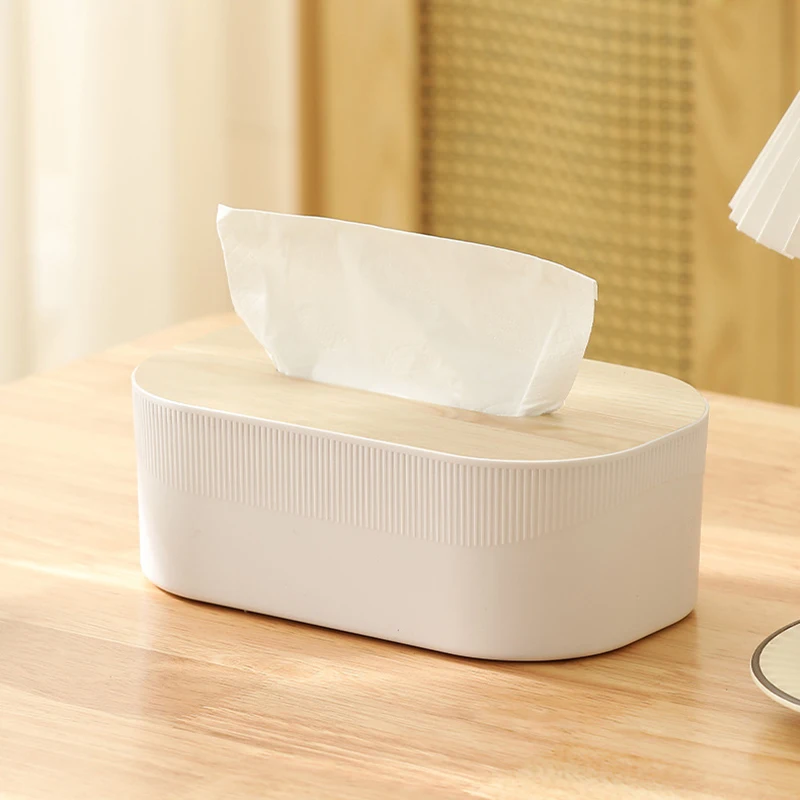 Plastic tissue box with wooden lid Scandinavian simplicity Style